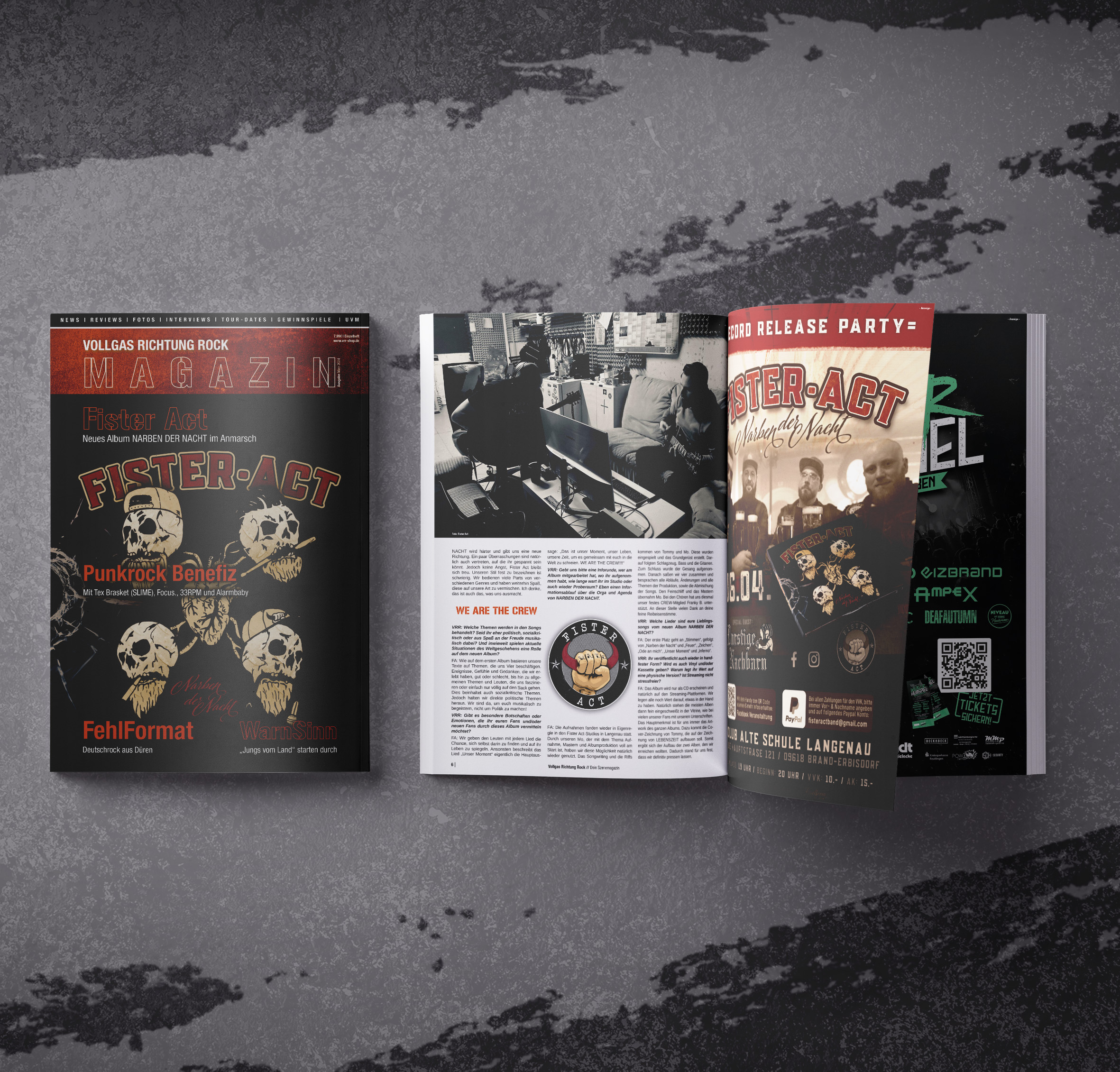 In unserem DIN A4 Magazin erwarten dich spannende Beiträge zu: Fister Act, Eizbrand, Wir Leben Laut Festival, MIR ZUR FEIER, Rock am Burghaldenwald, WarnSinn, FehlFormat, Punkrock Benefiz, Der W und vieles mehr.